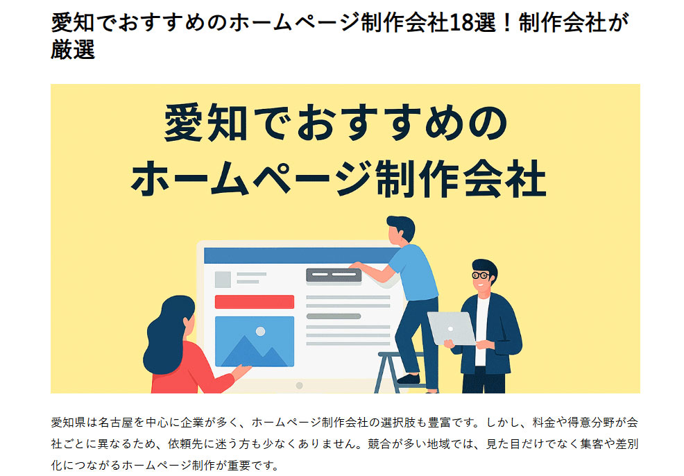 この度、大阪市のホームページ制作会社 セブンデザイン様Webサイト内のブログにてAOYを愛知県のおすすめホームページ制作会社としてご紹介いただきました。